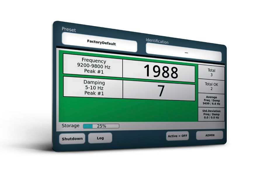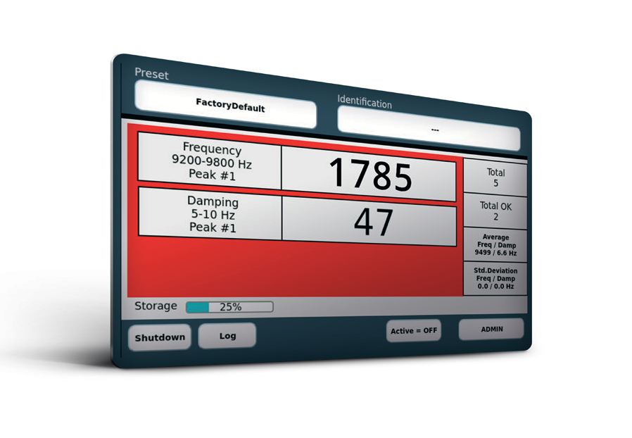 Deviations in frequency and/or damping reveal anomalies in the products which are affecting their mechanical performance. Setting boundary conditions for frequency and/or damping allows for distinguishing good from bad parts. The measurements can be automated.
