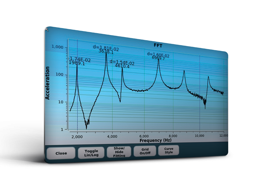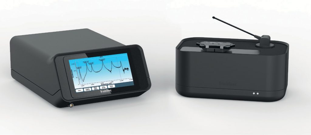 With a simple test set-up, the resonance vibrations are defined by frequency and damping which are unique for the product under test and determine the object’s fingerprint. Identical parts should show the same resonance vibration fingerprint.