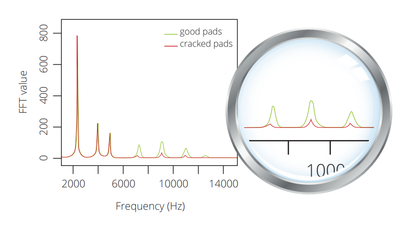 An important factor for brake noise reduction is tuning the resonance frequencies of the main components such as disc, caliper and brake pad, in order to harmonize them.