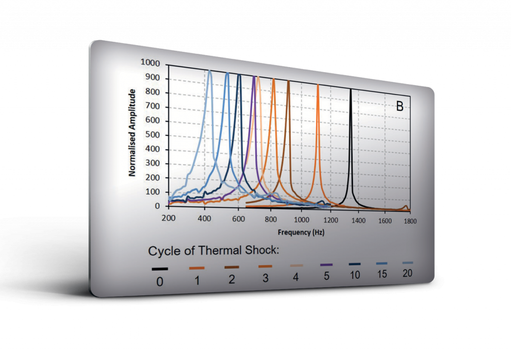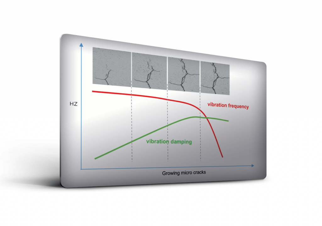 Micro-cracks in a product or sample have a direct impact on the damping of the resonance vibration. Growing cracks will further increase the damping and at a certain point, the integrity of the material will degrade resulting in lowering frequency measurements.